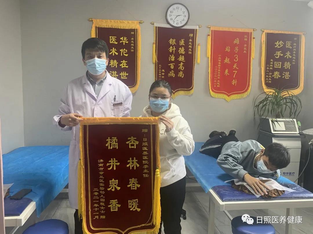11月23日,日照医养医院上演了温馨的一幕,患者程女士为李志超主任送来了一面“杏林春暖 橘井泉香”的锦旗,表达自己一家人对李主任及医院全体医务人员的信任与感激。