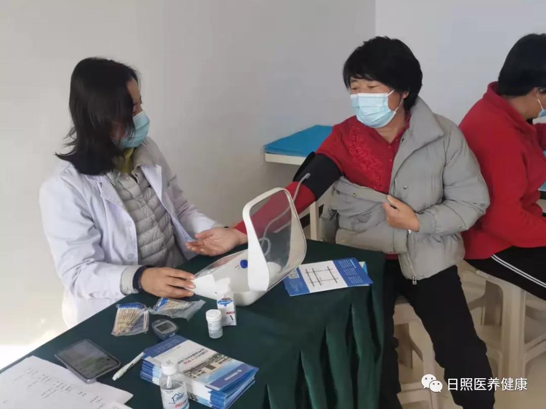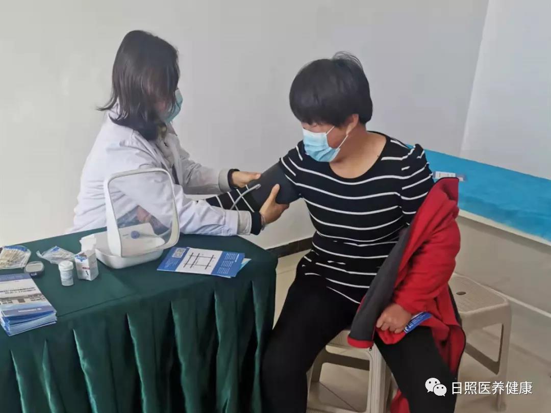 活动现场,医务人员细心了解居民的身体状况,热情地为群众提供测量血压、血糖等服务。