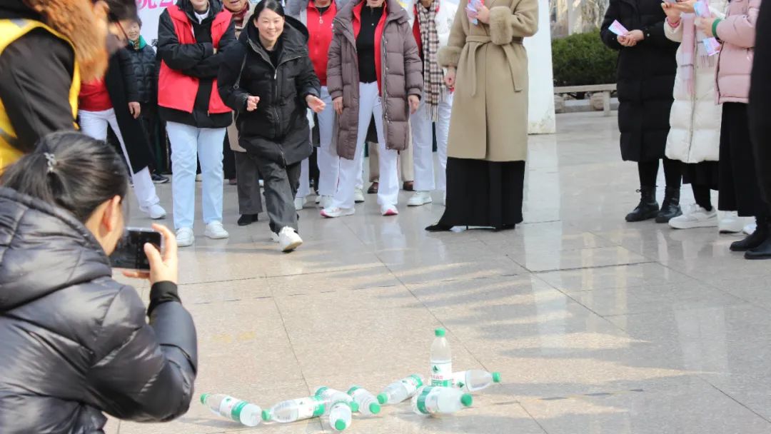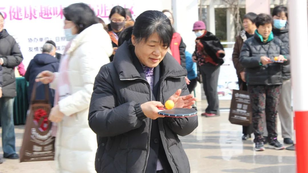 活动现场,踢毽子、模拟保龄球、吹乒乓球、托球跑、背靠背等趣味运动项目逐一展开,居民们积极参与,热情高涨,现场气氛热烈非凡。此外,日照医养医院的专家们还在义诊咨询区为居民提供面对面的健康指导和咨询服务,受到了居民们的热烈欢迎。